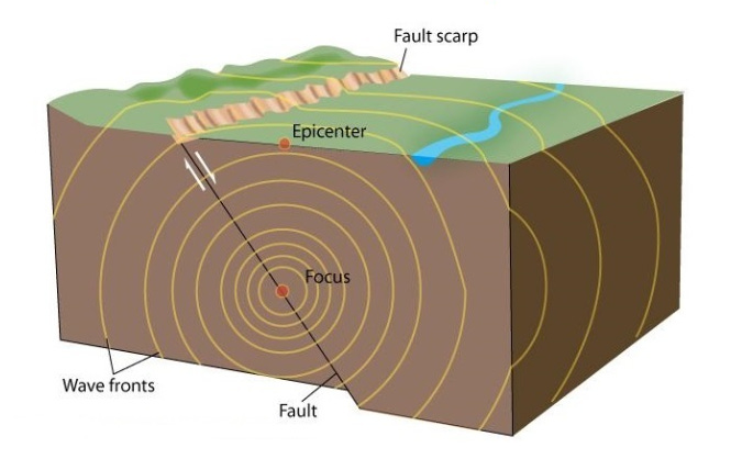We call these things “tectonic plates” and there are only 7 of them on earth. They are huge and they move, so you can think of them as sheets of thick ice floating on a liquid ocean. This movement is responsible for volcanoes, mountains, and earthquakes. Where two plates come together, the edges meet with tremendous power and friction. A certain amount of energy is required to overcome the friction along the fault line where they collide.